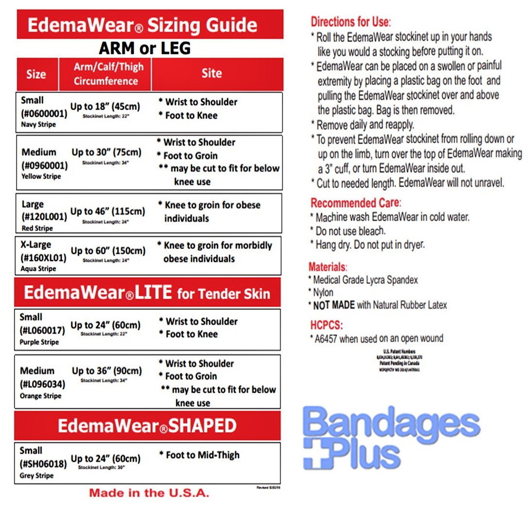 For more information about our Edema Wear elastic stocking for edema, please call (800) 700-1032, or e-mail info@bandagesplus.com.