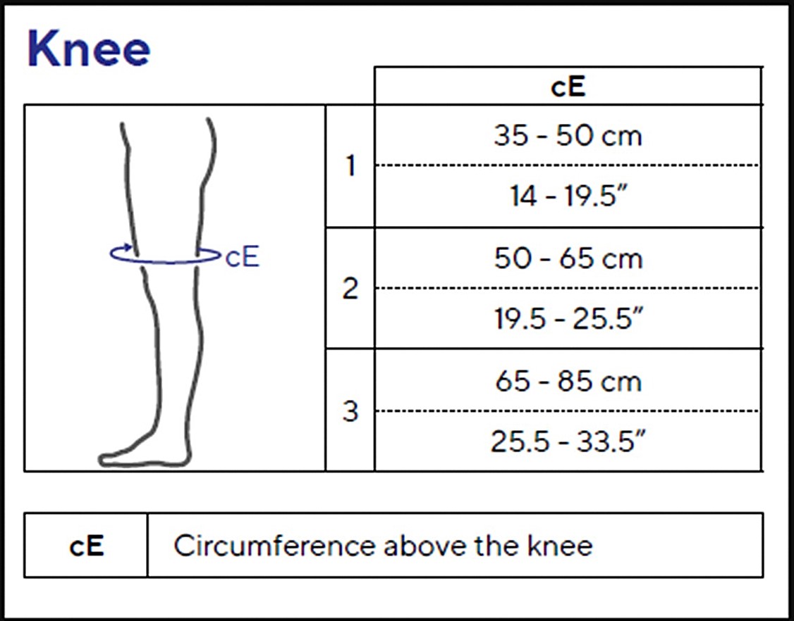 The Biflex Self Adjust knee compression wrap is available in 3 sizes (T1, T2 and T3). To ensure a proper fit for the Biflex Self Adjust knee compression wrap, you will take 1 measurement: