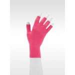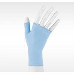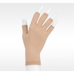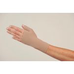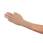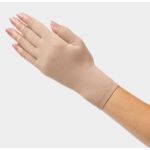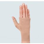 A lymphedema glove or hand gauntlet is usually worn during the secondary or “maintenance” phase of lymphedema treatment, after completion of complete decongestive therapy (CDT). Hand compression gloves and gauntlets are made in a variety of sizes and colors, and are specially designed to fit the various anatomical structures of the hand. A hand compression gauntlet provides gradient compression over the dorsum of the hand, while a lymphedema glove provides extended compression to the fingers. Most manufacturers also offer matching arm sleeves for lymphedema, that can be used along with the hand compression gauntlet or hand compression glove to provide complete upper extremity compression for treating lymphedema of the arm.