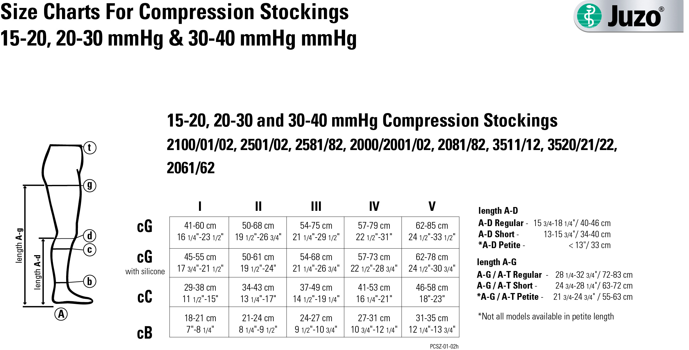 - Juzo Dynamic Compression Stockings 20-30 and 30-40 mmHg size chart (REGULAR width).
