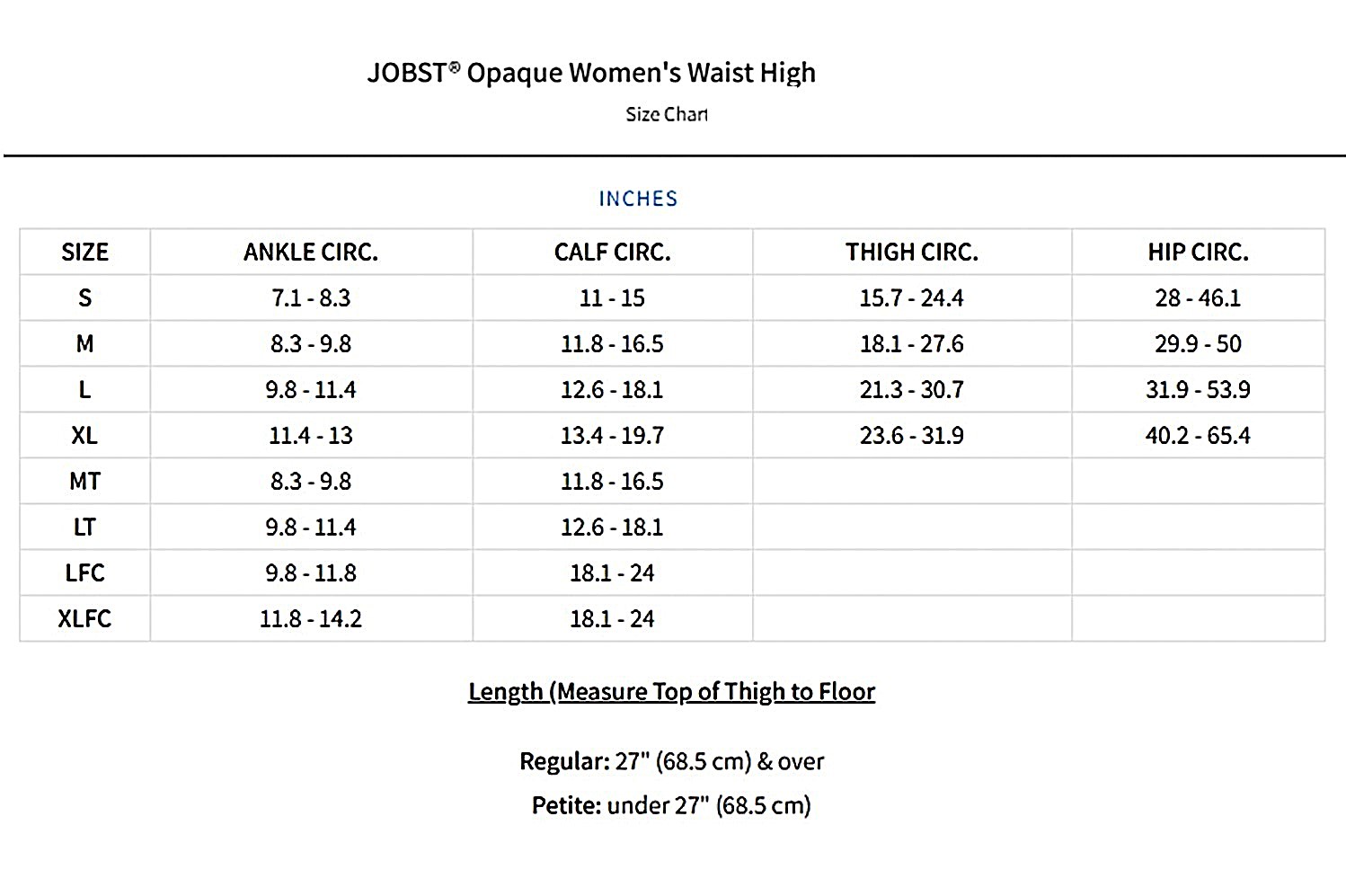 Sizes Of Jobst Opaque Compression Stockings