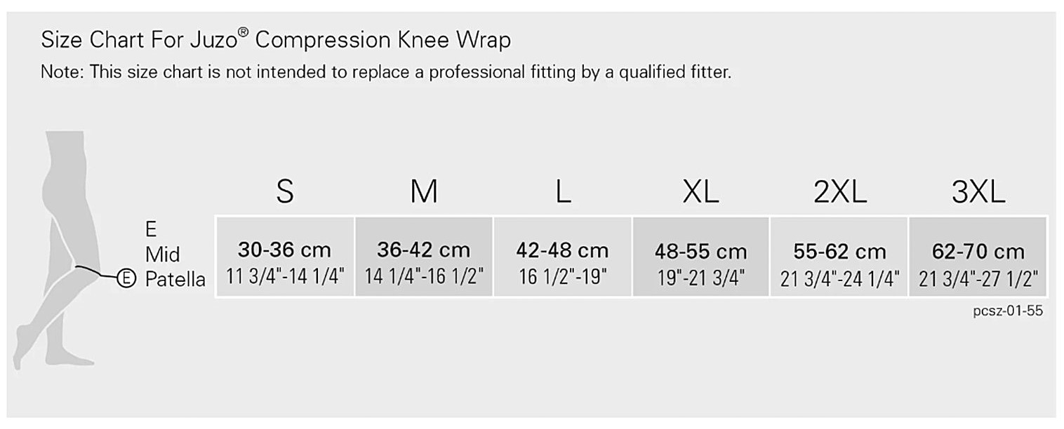 Sizes Of Juzo Reversa Compression Wraps For Legs (Knee Compression Wrap)