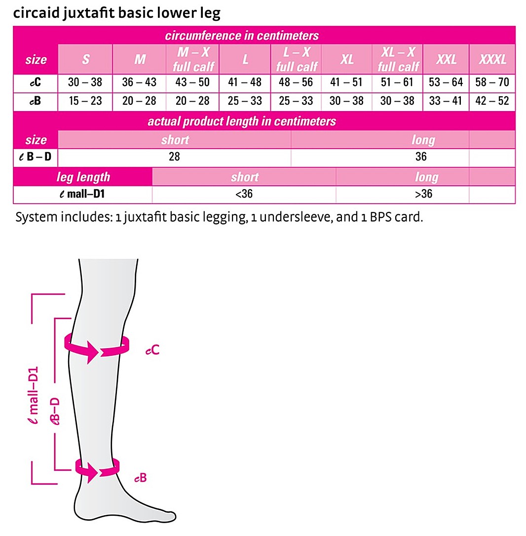 Click here to see the CircAid Juxtafit Basic lower leg compression wrap size chart.