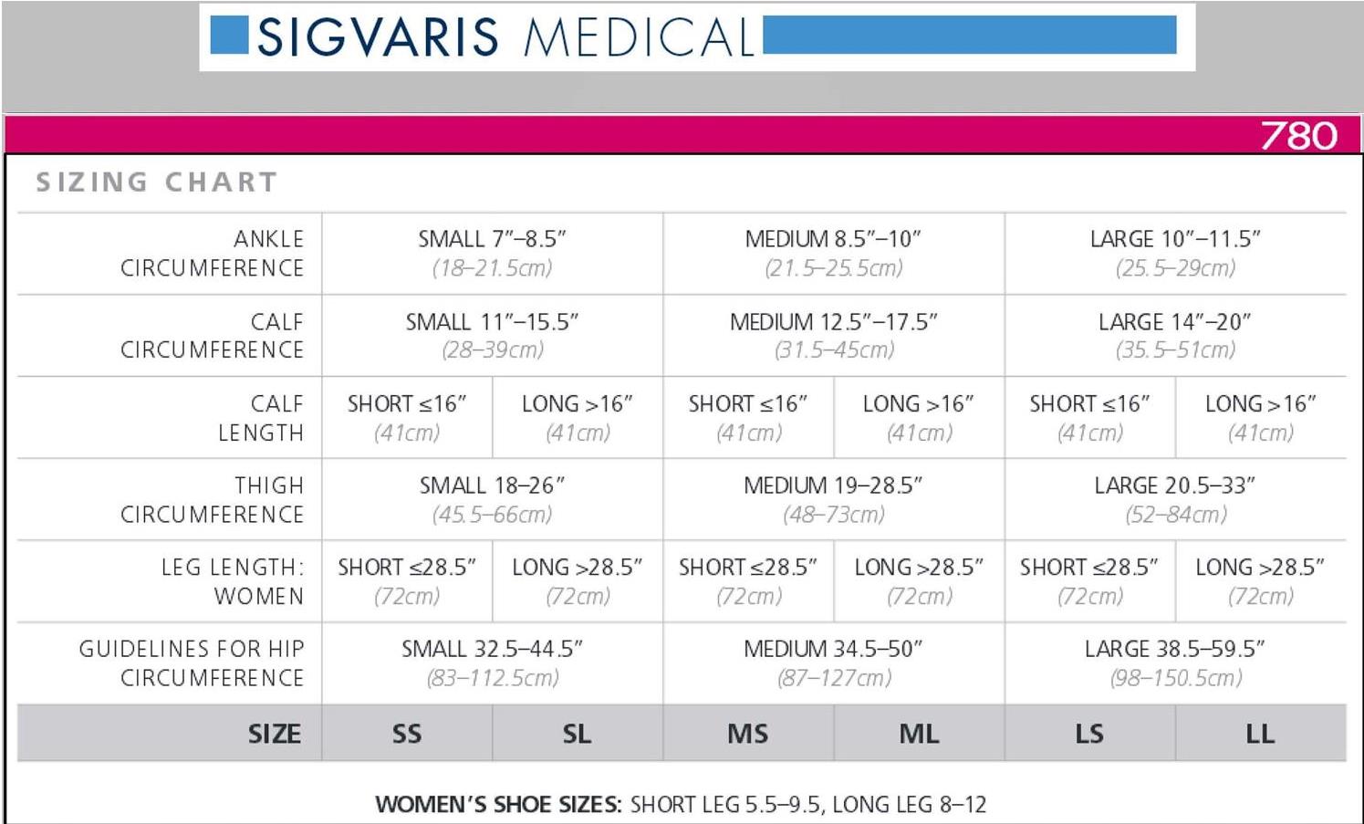 Click here to see the Sigvaris Sheer compression stocking size chart (780 Series).