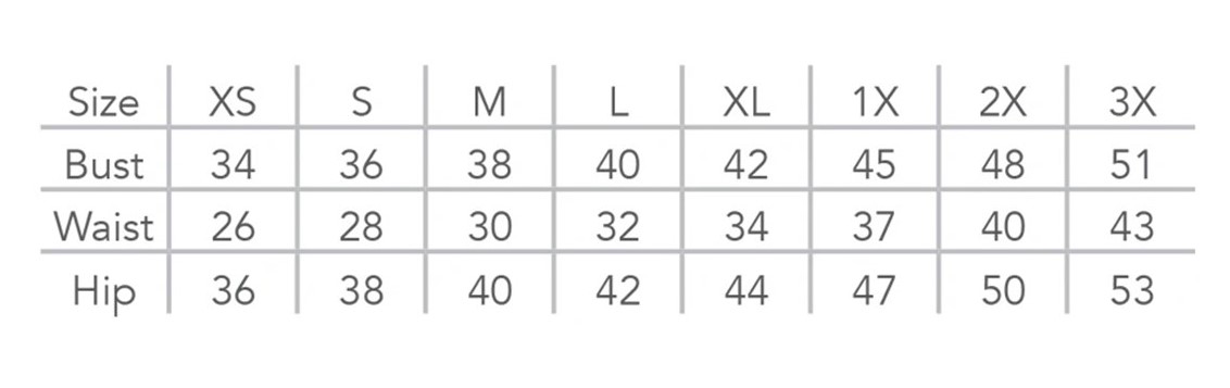 Click here to see the table for sizing conversions (inches to centimeters).